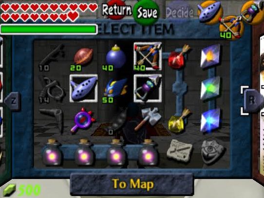 - Todos estos objetos se encuentran en el Lago Hylia, estómago de Jabu-Jabu, Rio Zora y en el Rancho Lon-Lon